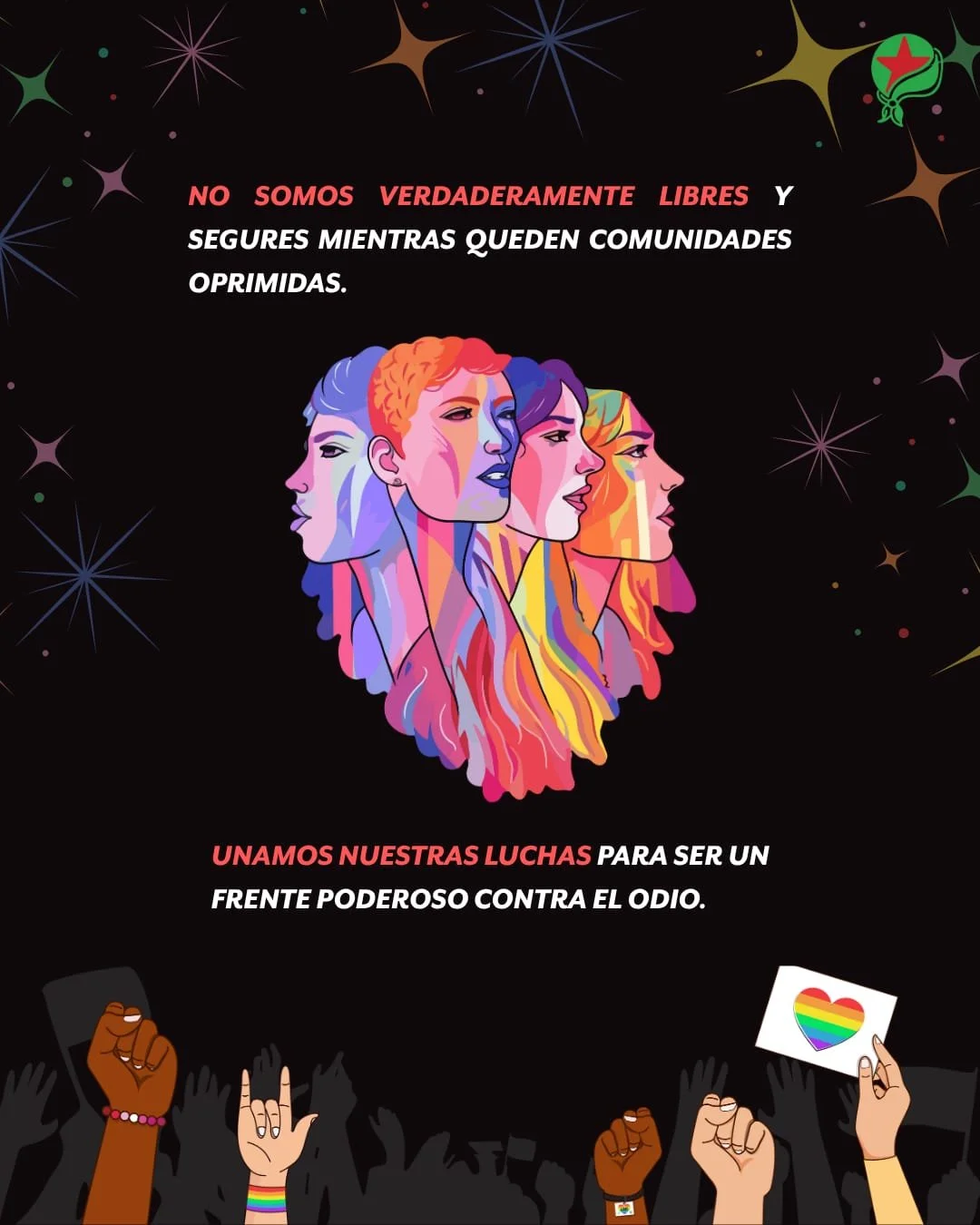 No somos verdaderamente libres y segures mientras queden comunidades oprimidas. Unamos nuestras luchas para ser un poderoso frente contra el odio.