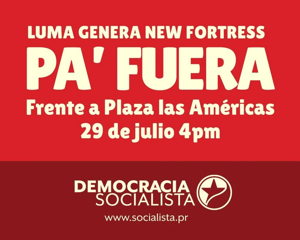 La organización Democracia Socialista anunció que se unirá a la manifestación “Fuera LUMA, Genera y New Fortress”, convocada por un grupo de artistas puertorriqueños y a la que se han unido diversas organizaciones sociales y políticas. La misma se celebrará frente a Plaza las Américas mañana, martes 29, a las 4:00pm. La organización afirma la necesidad de devolver la producción, distribución y transmisión de energía a manos públicas, para así poder acelerar la transición a la energía solar.