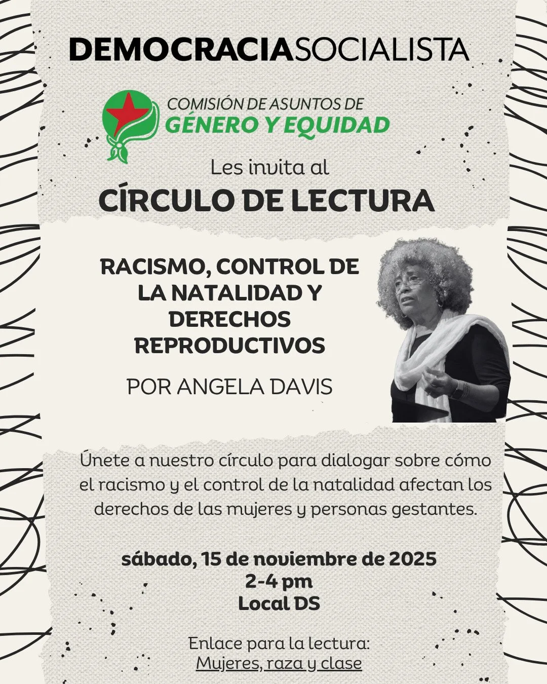 Estaremos discutiendo Racismo, control de natalidad y derechos reproductivos por Angela Davis.